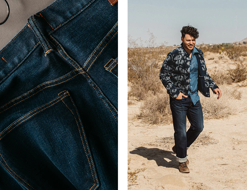 Our premium denim is inspired by the classic vintage blue jean. Our Premium Japanese 4-Way Stretch Selvedge denim story starts in Japan where our fabric is developed at one of the oldest denim mills. We blend a unique 4 way stretch material with selvedge denim to create a specific amount of stretch and comfort you wouldn’t typically get with selvedge denim. This 360 degree of stretch gives the wearer comfort from every angle no matter what they are doing.